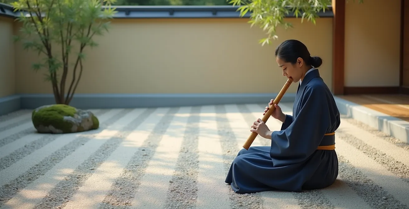 Cette connexion à la nature est au cœur de l’esthétique zen du wabi-sabi : la beauté de l’imperfection, de l’humilité et de l’éphémère. Le son du shakuhachi n’est jamais totalement pur. Il est aérien, parfois rauque, fragile. C’est cette « impureté » qui fait sa richesse et qui en fait un miroir si puissant. Le son produit n’est pas une performance, mais un reflet honnête de l’état intérieur du joueur : son souffle, sa concentration, sa tranquillité ou son agitation. La quête n’est pas celle du « son parfait », mais du son juste, celui qui est en parfaite adéquation avec l’instant présent.