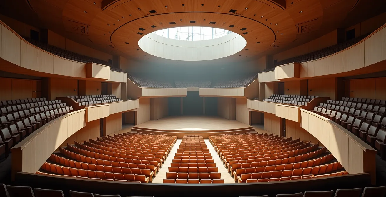 Cette quête de la perfection acoustique a un coût qui témoigne de sa complexité. L’excellence sonore n’est pas un hasard, mais un investissement massif. En France, le projet de la Philharmonie de Paris a nécessité 386 millions d’euros pour 2400 places, une grande partie de ce budget étant consacrée à la conception et à la réalisation de cette acoustique variable et optimale. Des murs aux courbures non parallèles pour éviter les échos flottants (flutter echo) aux fauteuils conçus pour avoir la même absorption acoustique qu’ils soient occupés ou vides, chaque détail est pensé pour atteindre l’homogénéité. L’architecture devient alors le premier système de sonorisation de la salle.